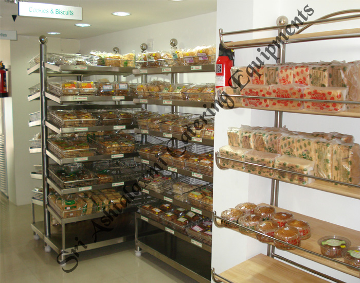 BAKERY WORK TABLE TROLLEYS >> bakery display glass racks